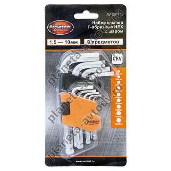 Набор ключей Г-образных "AV Steel" AV-362109 HEX удлиненных 1,5-10мм (9пр)
