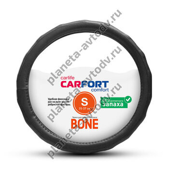 Оплётка руля "CARFORT" BONE экокожа, рельефные ребра S (35-37см) Черный