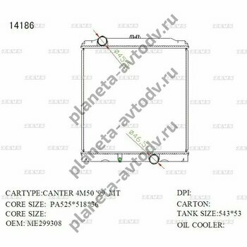 Радиатор основной 14186; ME299308; MMC CANTER 4M50 99; 2Sx3614186; 525x518x36; type PA; HYP
