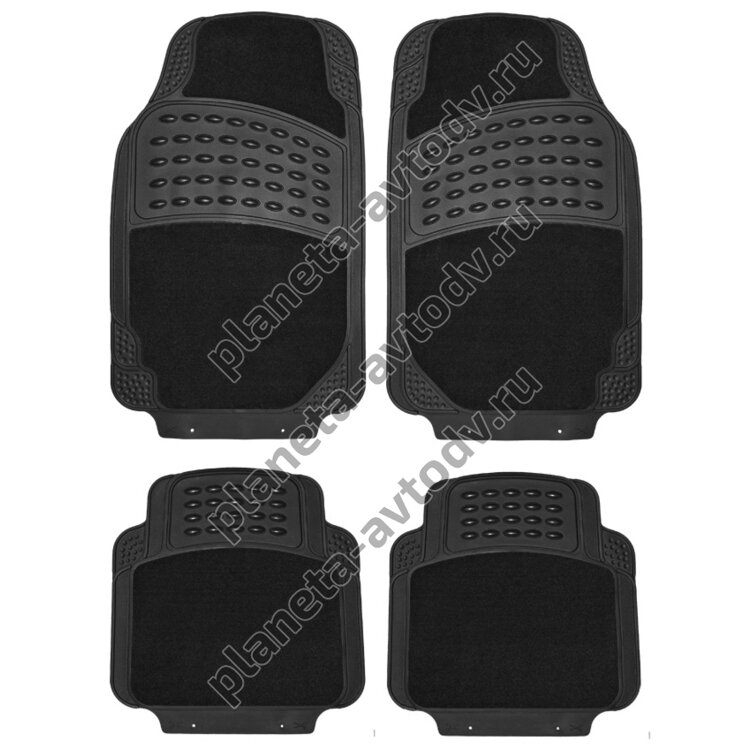 Текстиль отлично впитывает влагу и не дает обуви промокать. Шипы на оборотной стороне препятствует скольжению по салону. Дуговые резиновые вставки отлично фиксируют ногу и расположены в местах наибольших загрязнений. Резиновая основа способствует легкой чистке автоковриков. А наличие линий обреза позволяет идеально подогнать их по форме любого салона.